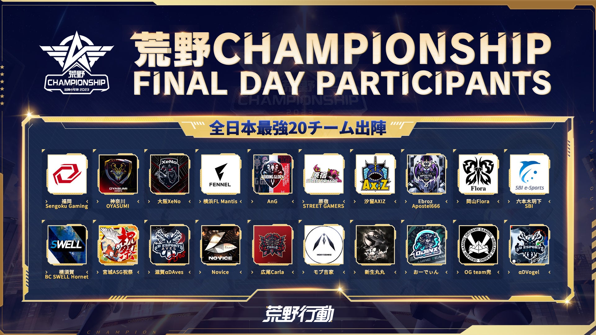 2023荒野CHAMPIONSHIPは、各進出ルートを通じて日本中から最強の20チーム、100人の猛者が集いました!予選から決勝まで勝ち進んだチームも、KSPやKOPLを勝ち抜いたプロチームも、誰よりも努力してきたからこそ、今この日本一を決める最高の舞台に立っています!