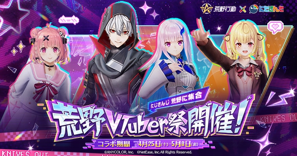 NetEase Gamesが提供する大人気バトルロワイヤルゲーム『荒野行動』は、2026年4月25日(土)から5月8日(金)までの期間、VTuber/バーチャルライバーグループ「にじさんじ」とのコラボイベント第4弾を開催いたします。本コラボでは、笹木咲、葛葉、リゼ・ヘルエスタ、星川サラといった人気ライバーが集結。