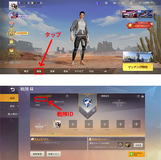 戦隊ID*戦隊ID入力後自動的にゲーム内戦隊名が 表示されます。現在名前の変更はできません